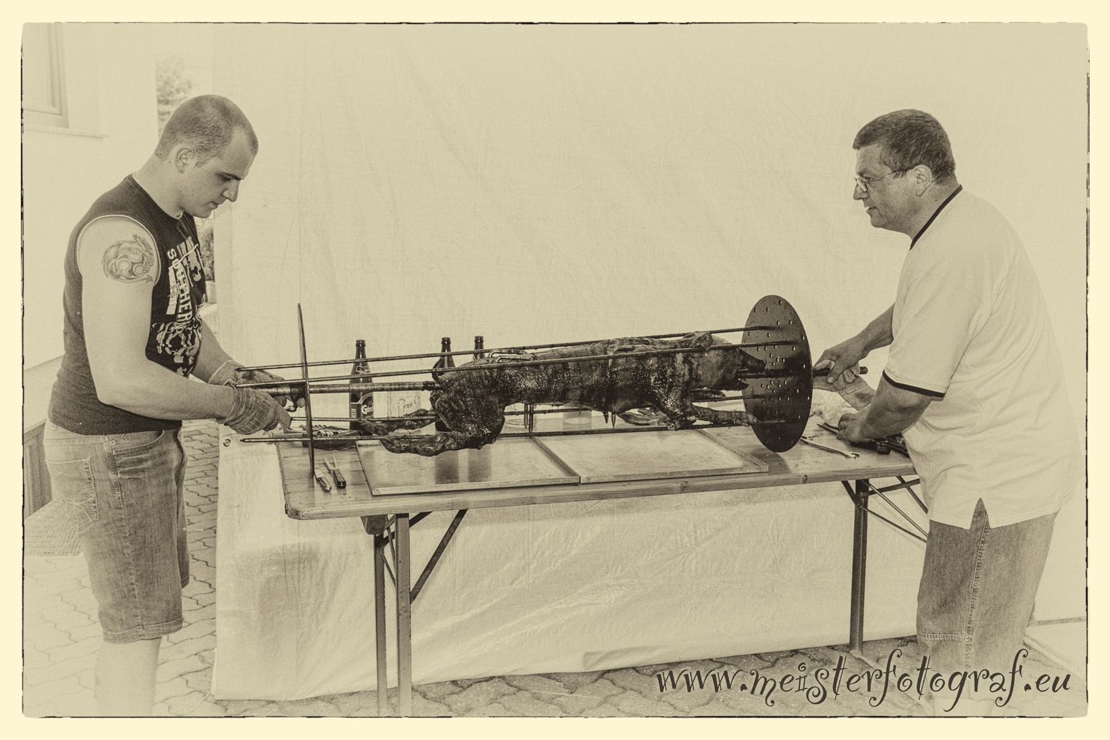 Eine große Geburtstagsparty war es, die Philipp zu seinem 25er organisierte. Spanferkel braten und jede Menge sonstiger kulinarischer Angebote waren aufgetafelt und es ging hoch her.